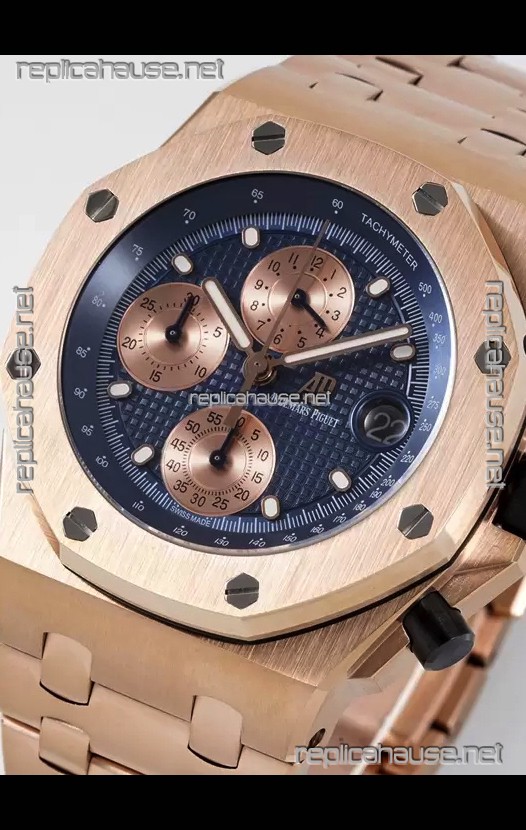 Audemars Piguet Royal Oak Offshore Blue Dial Chronograph 1:1 Mirror Replica Watch - Rose Gold