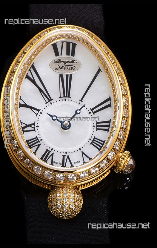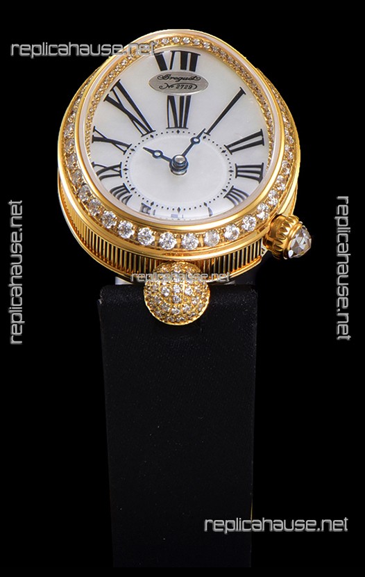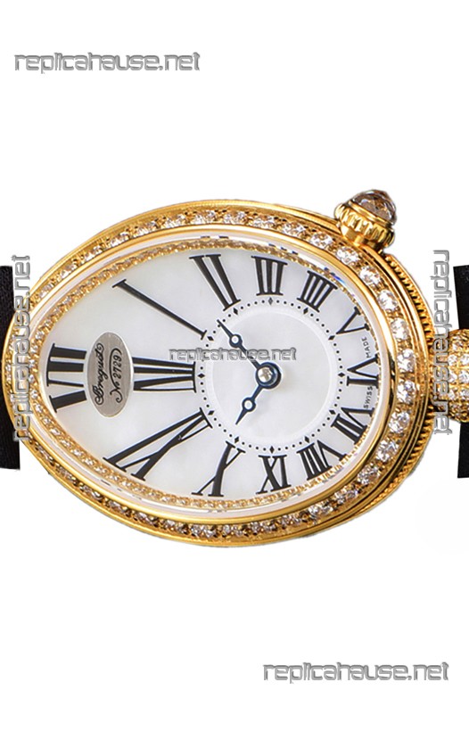Breguet Reine De Naples Ladies Yellow Gold Black Fabric Swiss 1:1 Edition Replica Watch