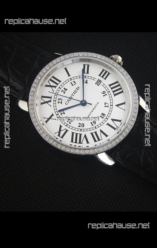 Cartier "Ronde De Cartier" Stainless Steel Case watch with Lab Created Diamonds Bezel