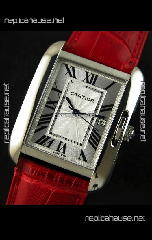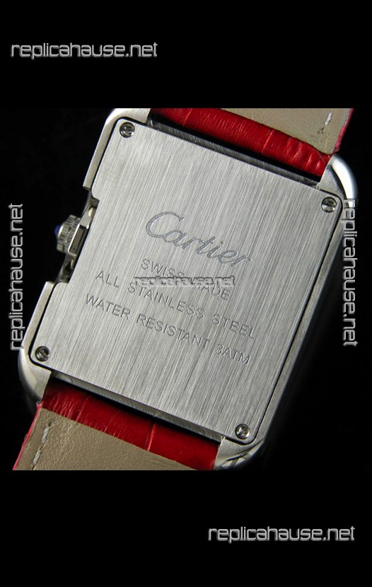 Cartier Tank Ladies Replica Watch in Steel Case/Red Strap