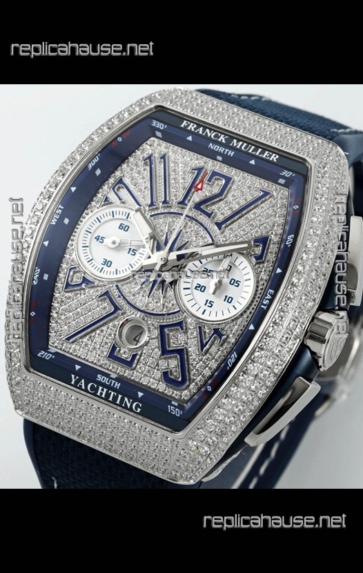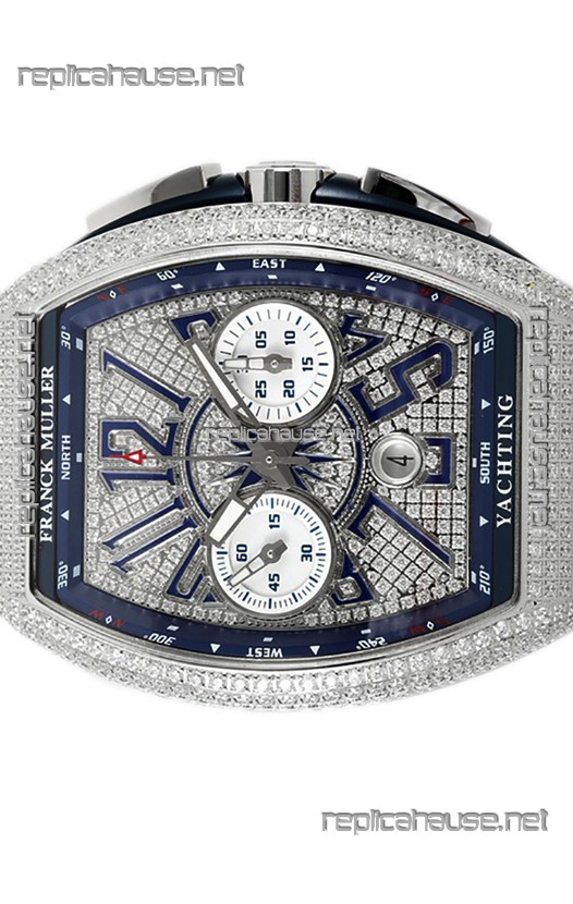 Franck Muller Vanguard V45 Chronograph 904L Steel Diamonds Embedded Dial Swiss Replica