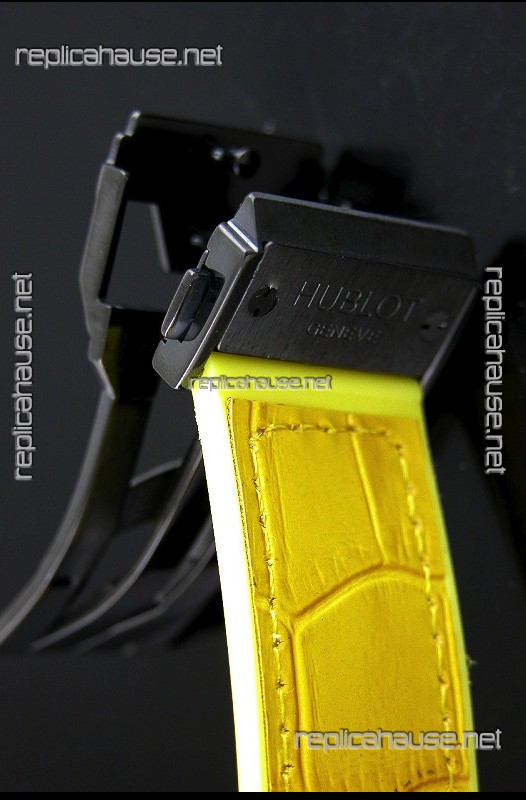 Watch name: Hublot Big Bang All Black Edition in Lemon Strap and Baguette Diamonds Bezel