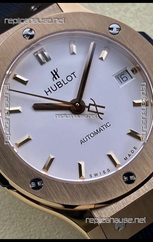 Hublot Classic Fusion 1:1 Mirror Replica Swiss Watch in Rose Gold 904L Steel Casing White Dial 38MM