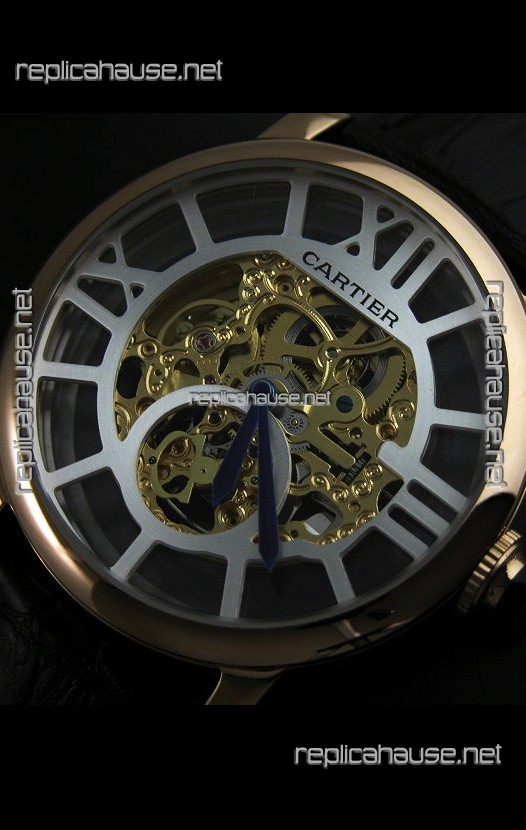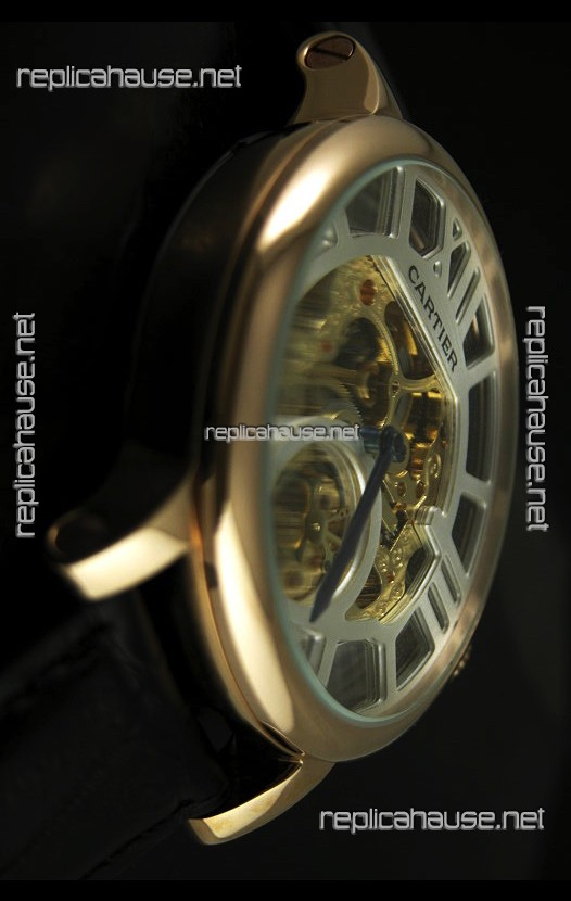 Cartier Ronde de Japanese Replica Watch in Skeleton Yellow Gold Dial