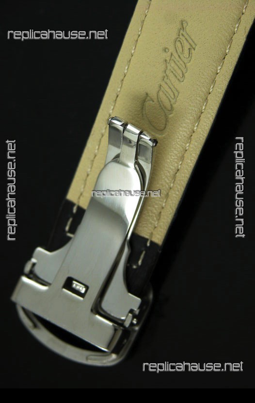 Cartier Ronde de Tourbillon Japanese Replica Diamond Watch in Black Strap