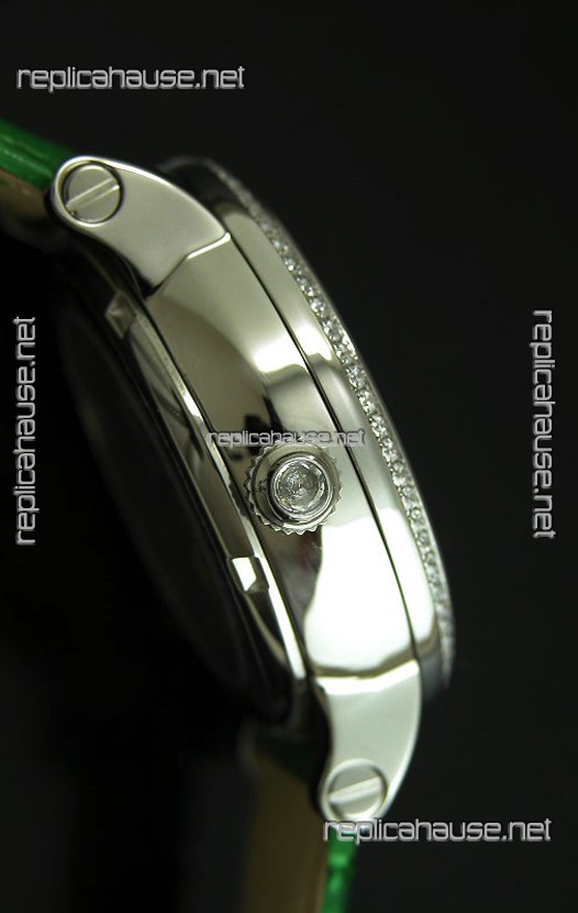 Cartier Ronde de Tourbillon Japanese Replica Diamond Watch in Green Strap