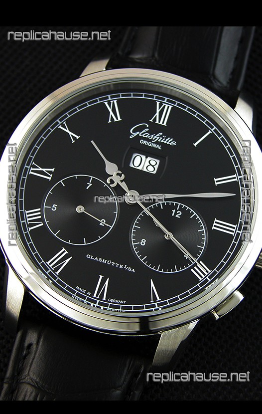 Glashuette Dual Sub Dial Japanese Replica Watch in Black Dial