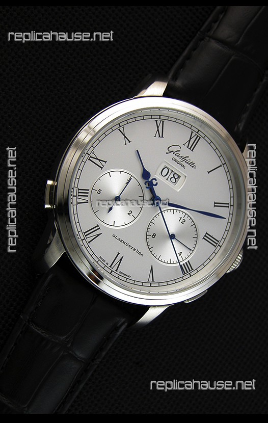 Glashuette Dual Sub Dial Japanese Replica Watch in White Dial