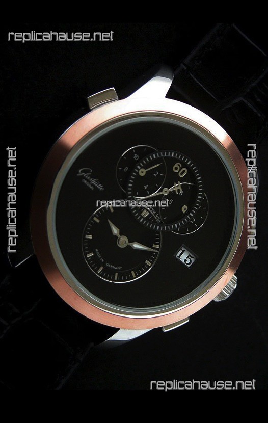 Glashuette ST. Steel Japanese Replica Watch in Black Dial