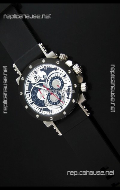 Function: Hour, Minute, Second, Arabic Markers, Date Indicator, Four Light Blue Functional Subdials for New York, Paris, L.A and Tokyo Time Display