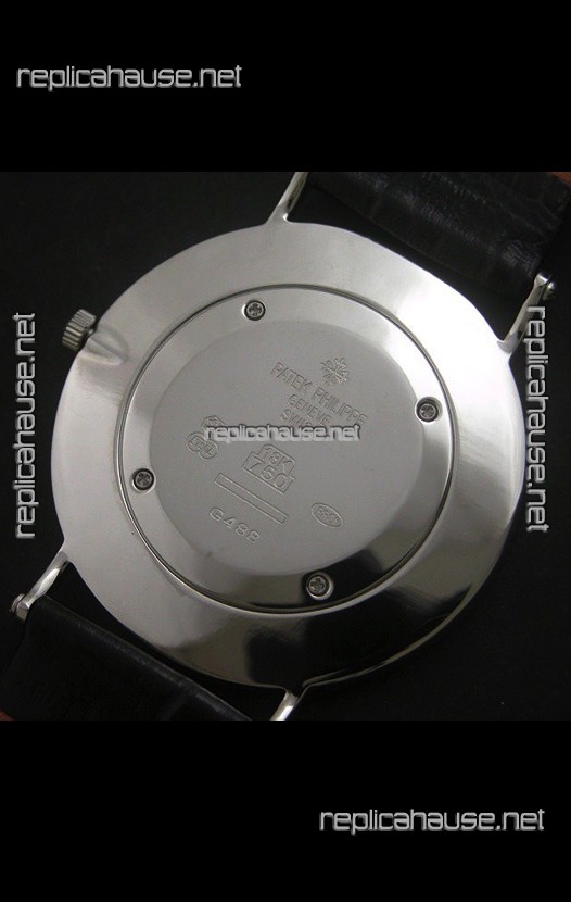 Strap: Genuine Black Leather Strap with Patek Philippe Markings