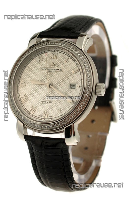 Vacheron Constantin Geneve Japanese Replica Gold Watch in Diamond Bezel