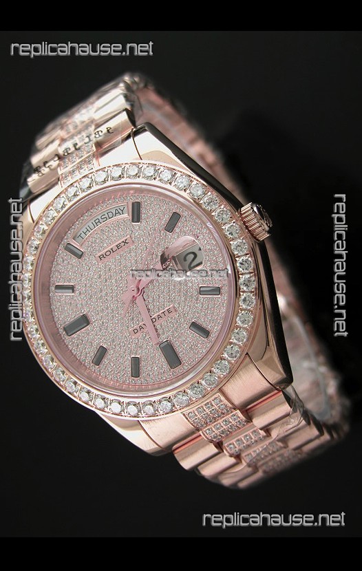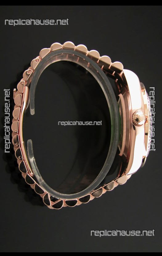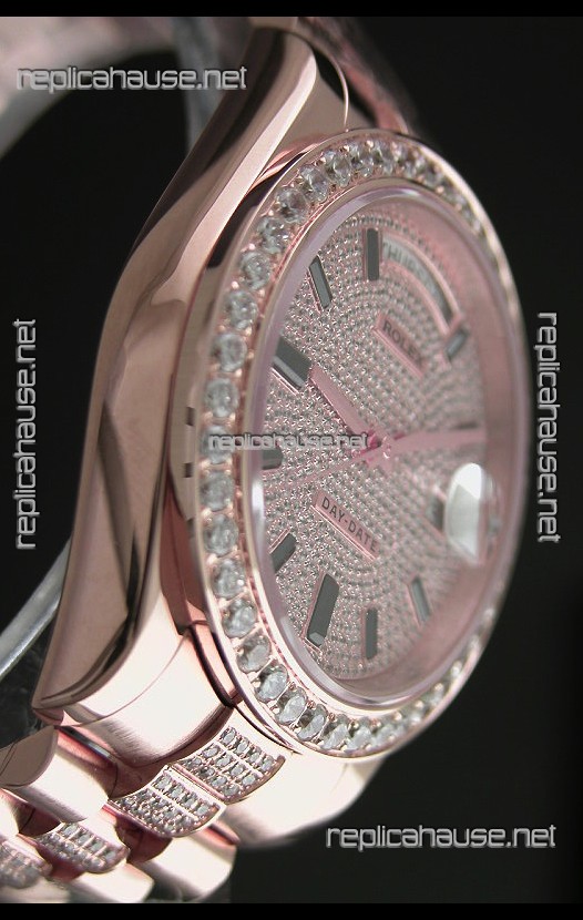 Rolex Day Date Japanese Automatic Rose Gold Watch in Ruby Stick Markers