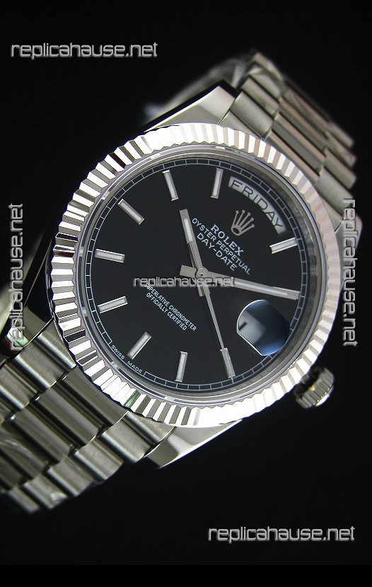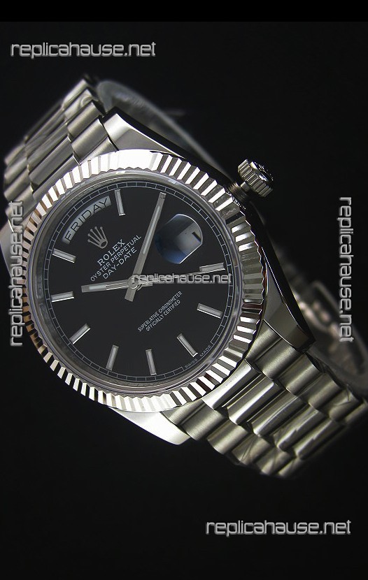 Rolex Day Date Japanese Replica Watch - Black Dial in Steel Casing - 40MM