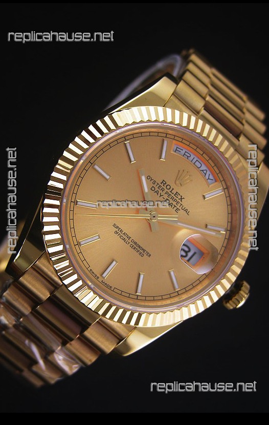 Rolex Day Date Japanese Replica Watch - Yellow Gold Casing in Gold Dial 40MM