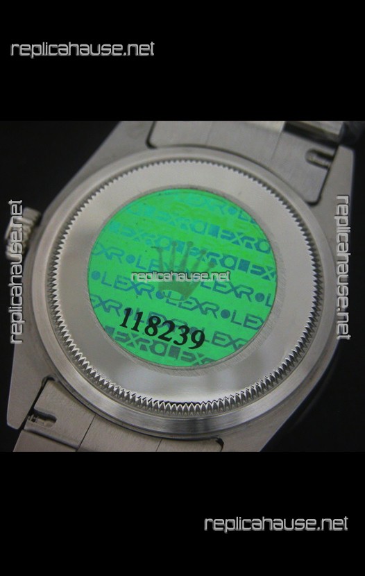 Other Feartures: Full Diamonds Encrested Bezel, Green Hologram Sticker behind the Watch and Scratch Proof Sapphire Crystal with Double Layer Anti Reflective Coating