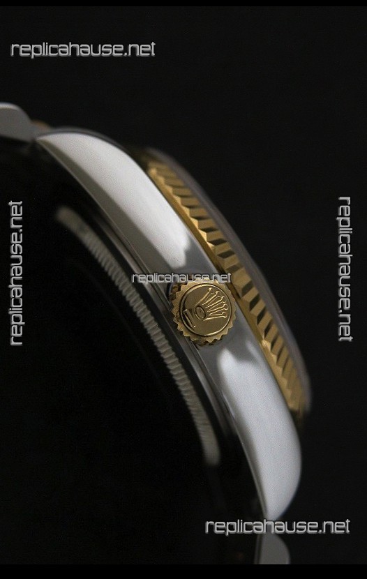 Rolex Day Date Just Japanese Replica Two Tone Gold Watch in White Dial