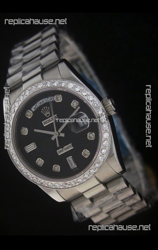 Rolex Day Date Just Japanese Replica Grey Watch in Full Diamond Bezel
