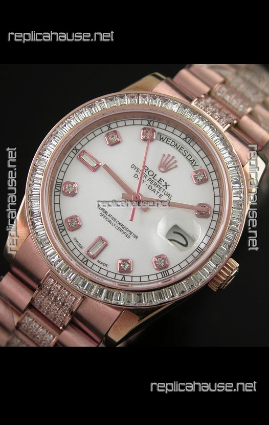 Rolex Oyster Perpetual Day Date Japanese Rose Gold Automatic Watch in Diamond Markers