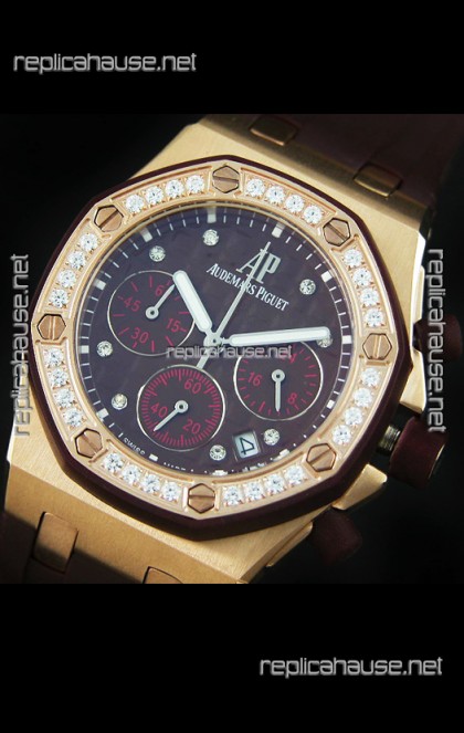 Audemars Piguet Royal Oak Offshore Lady Alinghi Swiss Watch in Maroon Checkered Dial