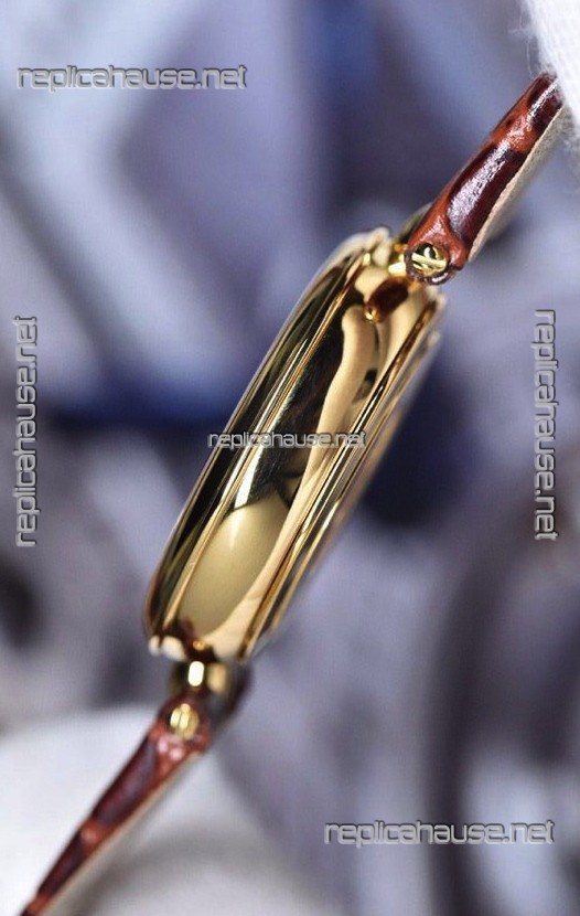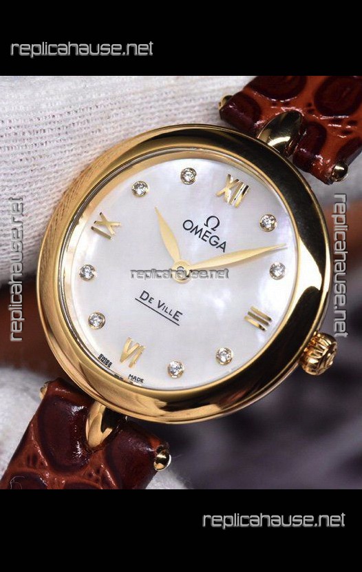 Omega De Ville Prestige Dewdrop Edition Swiss Quartz Watch in Rose Gold Brown Strap