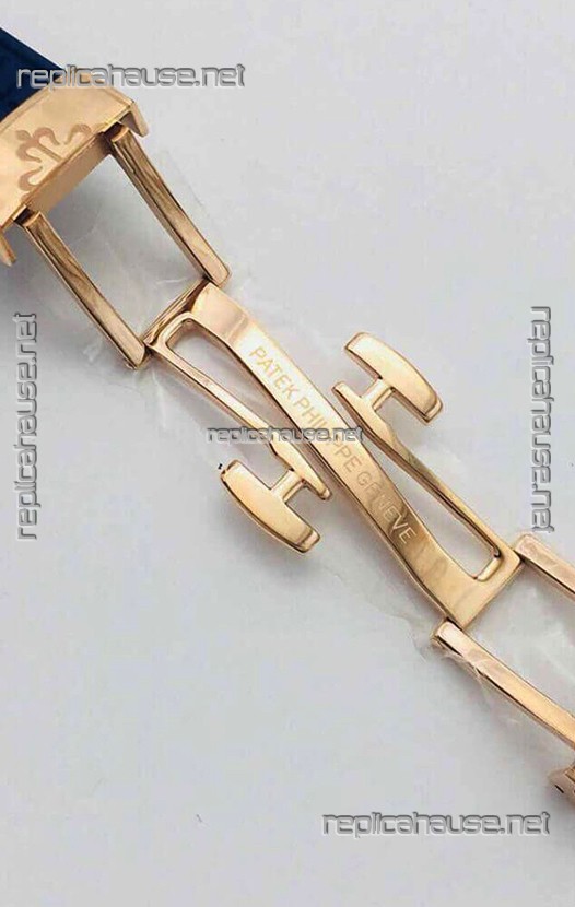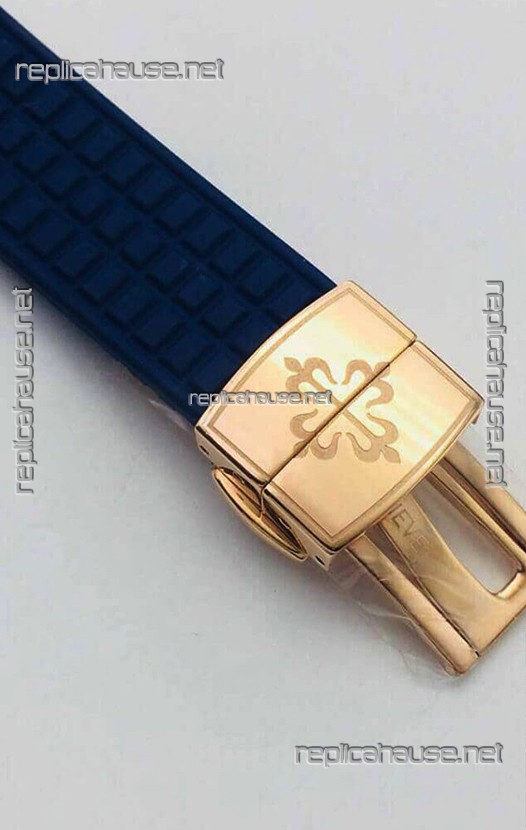 Blue Rubber Strap with Yellow Gold Plated Steel Folding Clasp complete with Patek Philippe Markings.