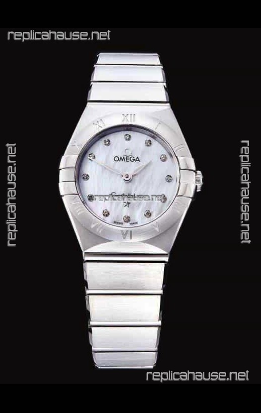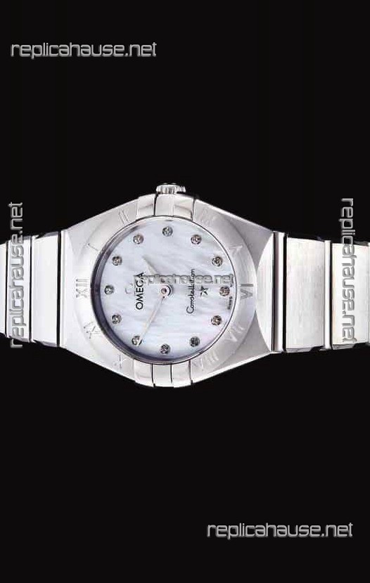 Omega Constellation Ladies Swiss Quartz 1:1 Mirror Replica - Steel Casing in Pearl Dial