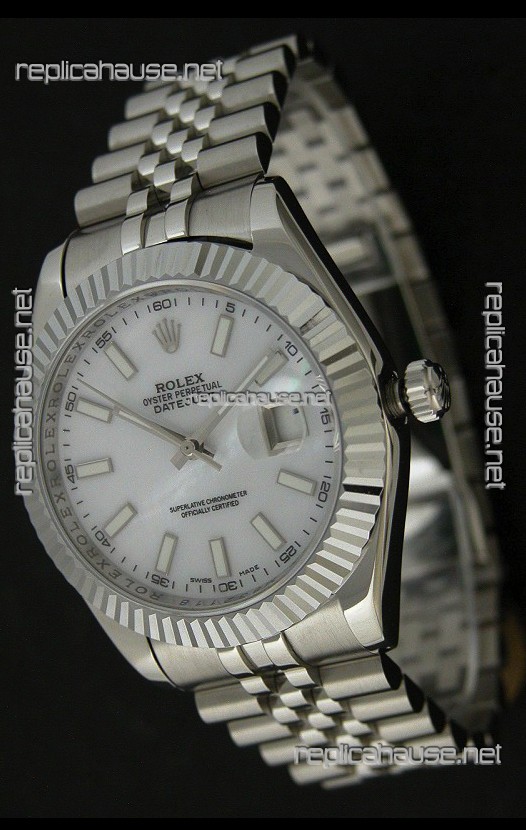 Rolex DateJust Japanese Replica Watch in Mop White Dial