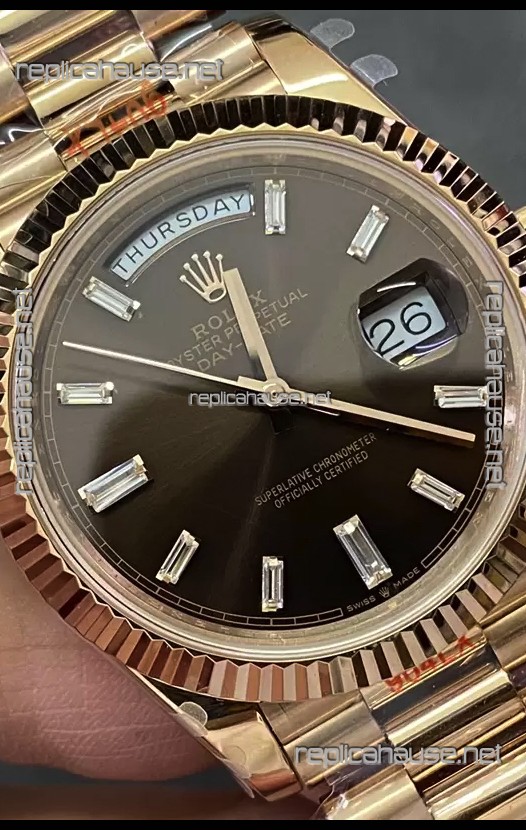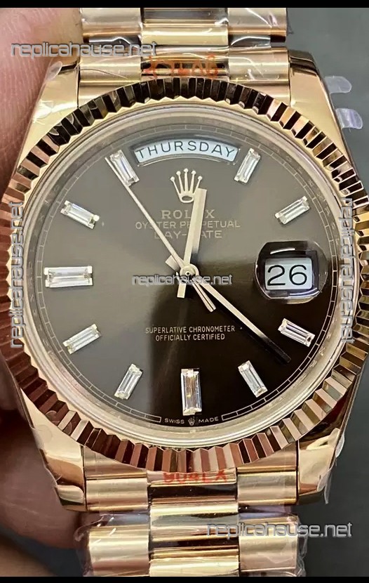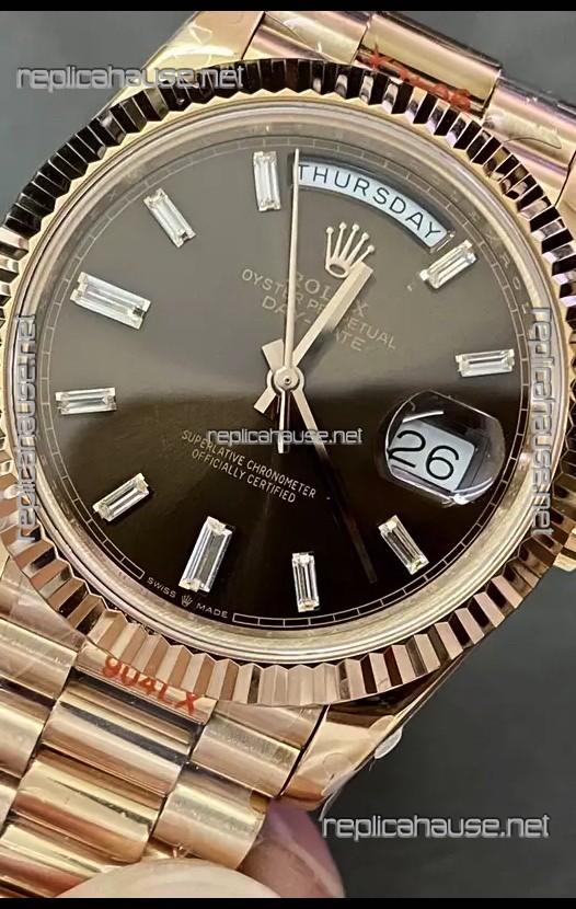 Rolex Day Date 40MM 228235 Rose Gold in Dark Brown Dial 1:1 Mirror Replica Watch