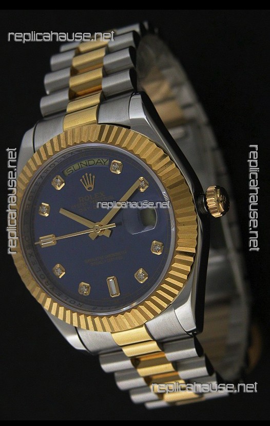Rolex Day Date Just swiss Replica Two Tone Gold Watch in Light Blue Dial