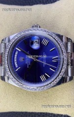 Rolex Day Date Presidential Stainless Steel ICE Blue Dial Watch 40MM - 1:1 Mirror Quality