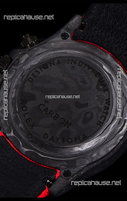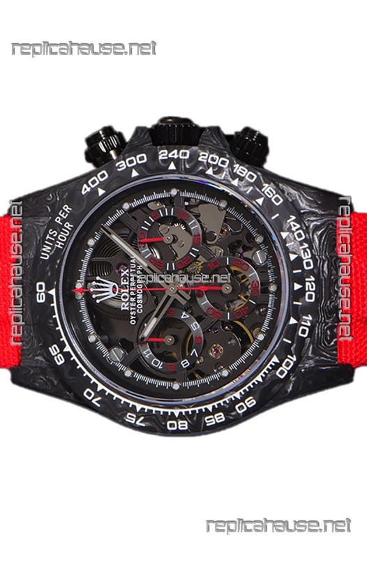Rolex Daytona DiW Skeleton Carbon Edition Watch - Forged Carbon Casing Red Strap 1:1 Mirror Replica