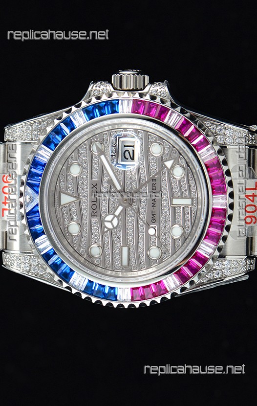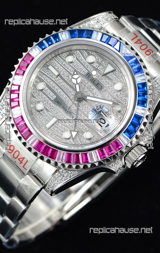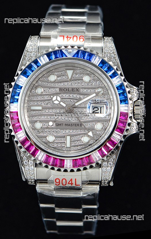 Rolex GMT Masters II Iced out Swiss watch with 904L Steel Case