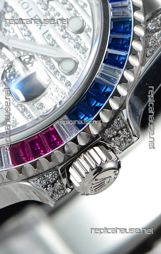 Rolex GMT Masters II 2011 Edition Swiss Replica Two Tone Watch with Diamonds Casing and Bezel
