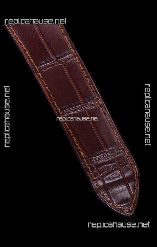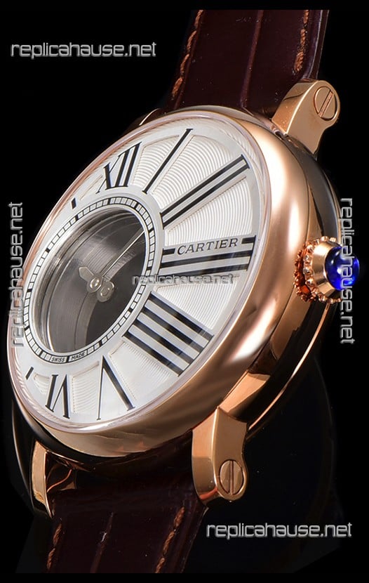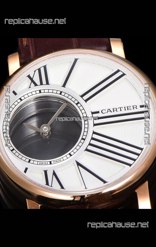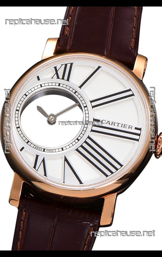 Rotonde De Cartier in Rose Gold Casing - Leather Strap Swiss Quartz Replica Watch