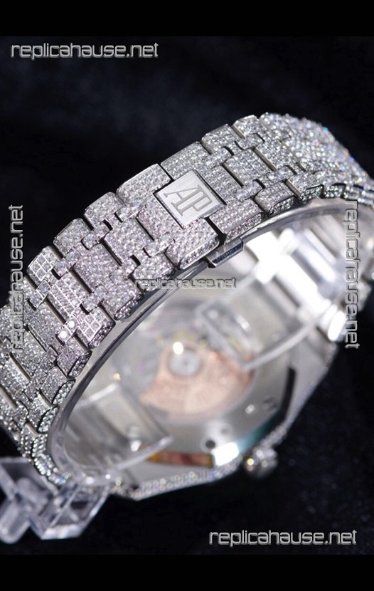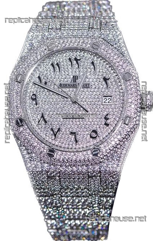 Audemars Piguet Royal Oak 15400 Iced Out Arabic Dial in Stainles Steel Casing Swiss Replica Watch