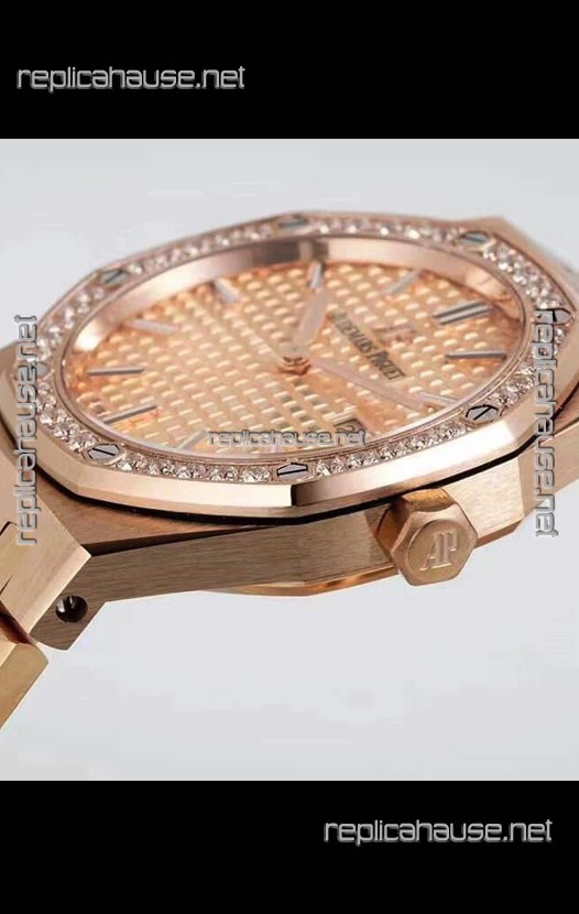 Audemars Piguet Royal Oak 33MM Rose Gold Casing Gold Dial 1:1 Mirror Replica Watch
