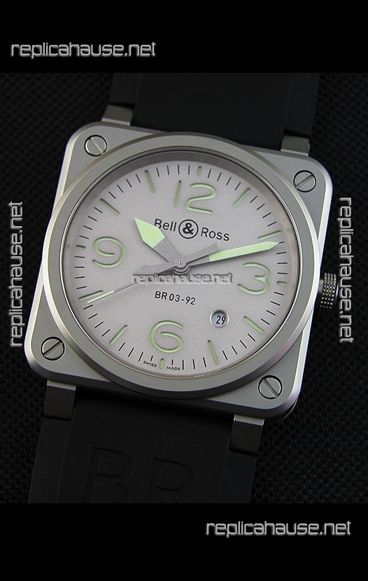 Bell & Ross BR03-92 Horolum Grey Dial Rubber Strap Swiss Replica Watch 1:1 Mirror Replica