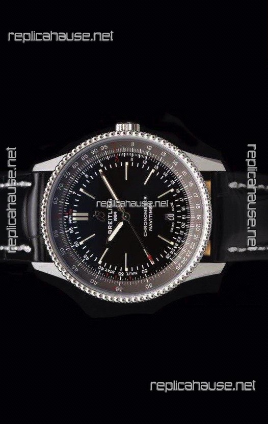 Breitling Navitimer 1 Automatic Swiss Replica Watch in Black Dial - Leather Strap