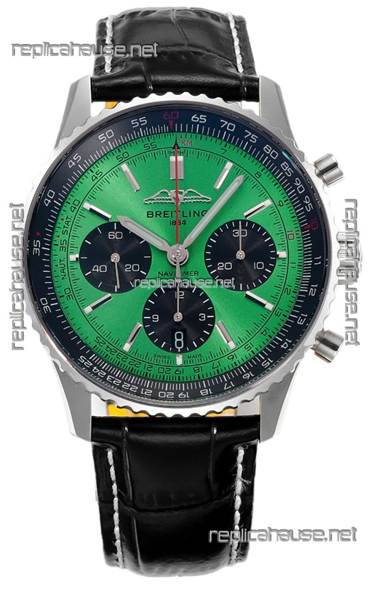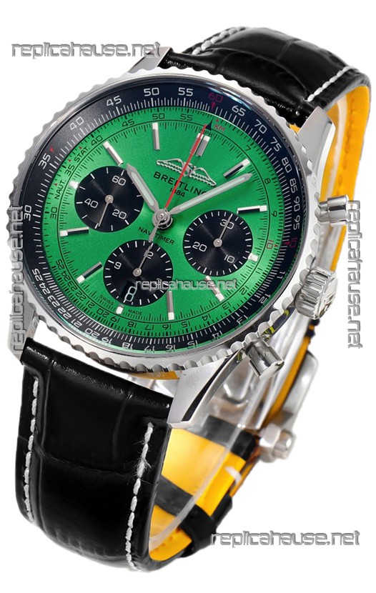 Breitling Navitimer B01 Chronograph 43 Green Dial - 904L Steel Casing 1:1 Mirror Swiss Replica