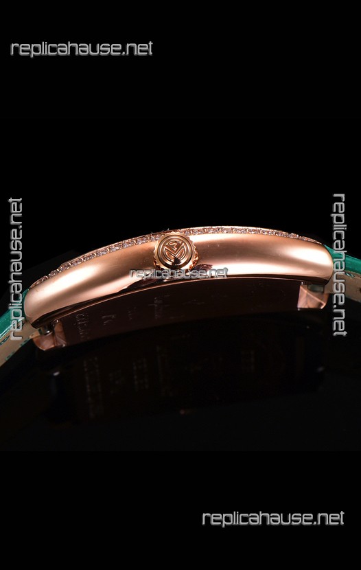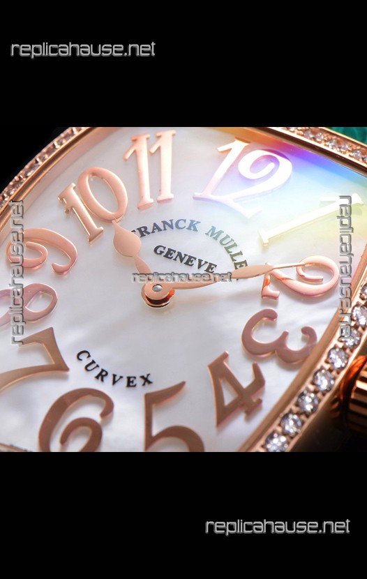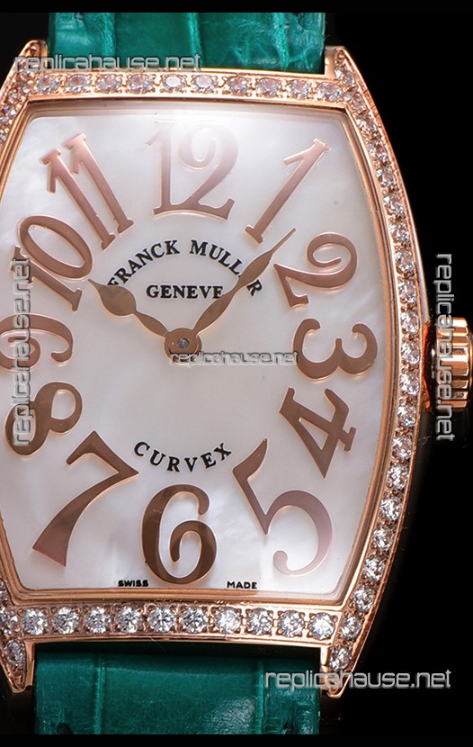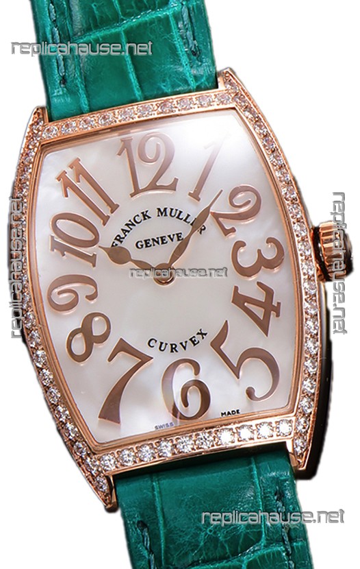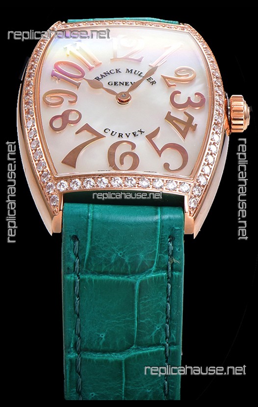 Franck Muller Cintree Curvex Mother of Pearl Dial Watch in Rose Gold Plating - Green Strap