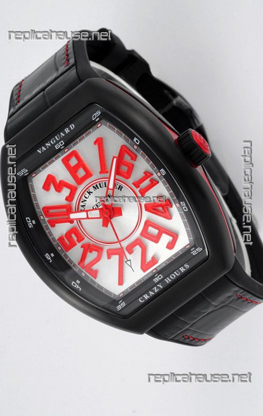Franck Muller Vanguard Crazy Hours in DLC Coated Casing White Dial Swiss Replica Watch