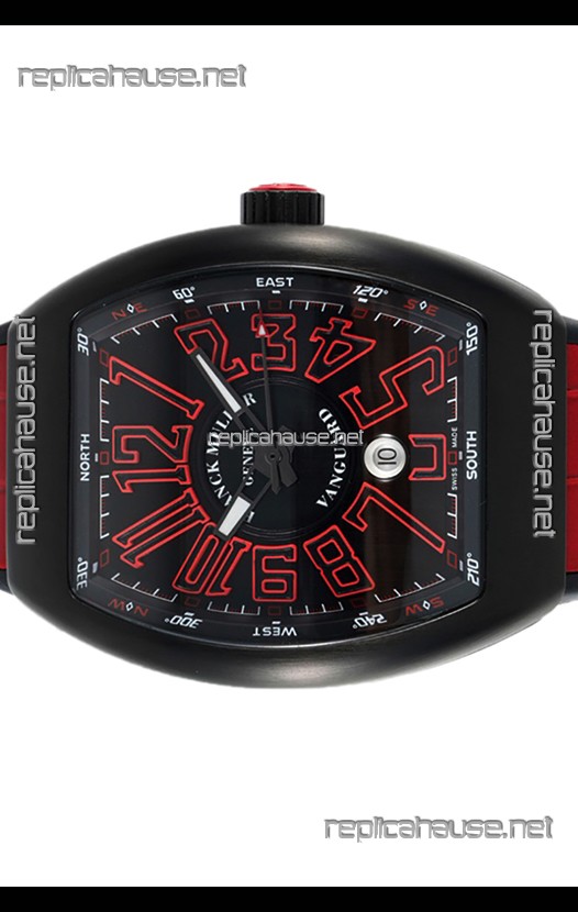 Franck Muller Vanguard in DLC Coated Casing Black Dial Swiss Replica Red Strap