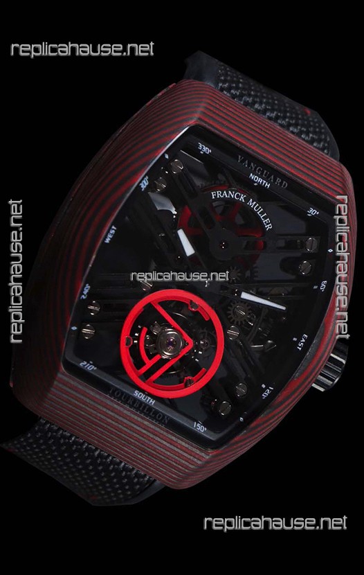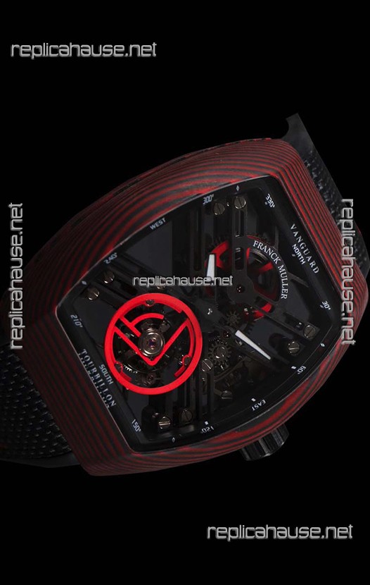 Franck Muller Vanguard Skeleton Tourbillon Red Carbon Swiss Replica Watch