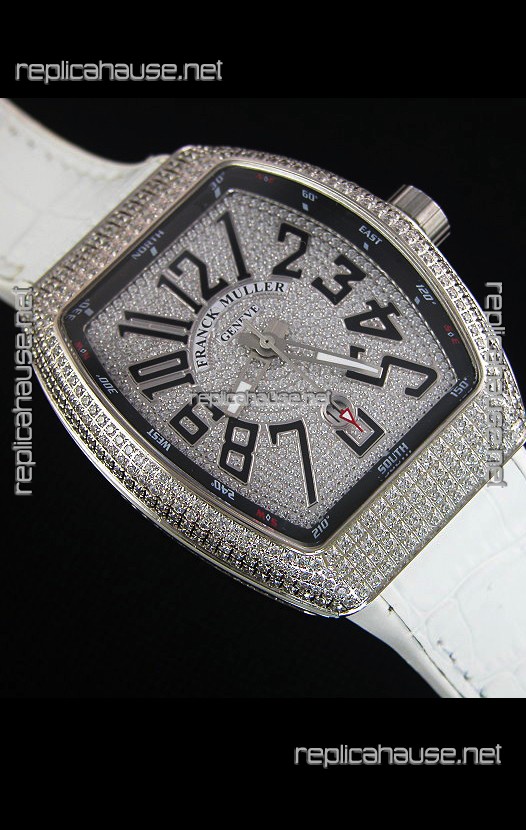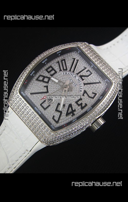 Franck Muller Vanguard Swiss Replica Watch in Diamonds Encrusted Dial