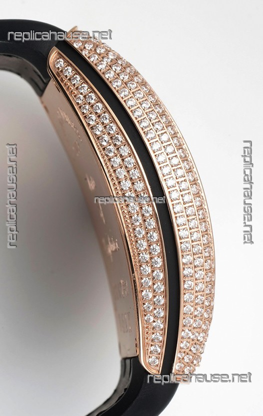 18K Rose Gold Plating on 904L Stainless Steel Casing with High Quality Swiss Cut Diamonds embedded onto Casing and Bezel