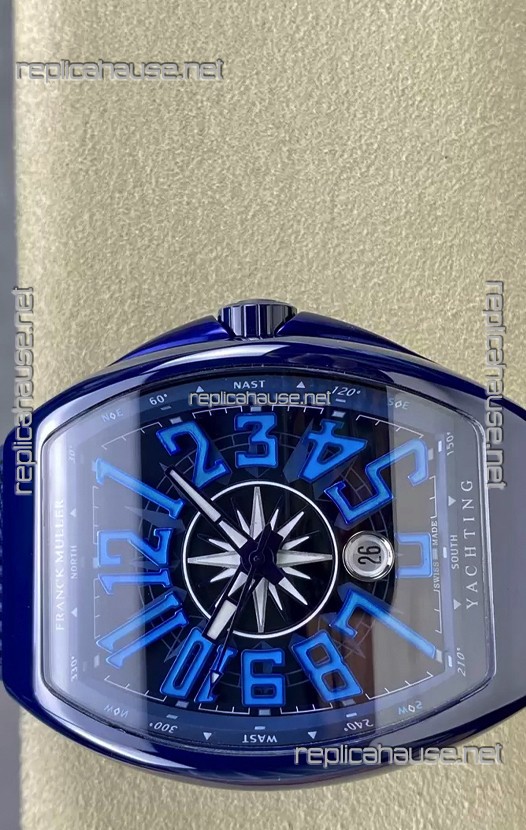 Franck Muller Vanguard Yachting Blue Ceramic 1:1 Mirror Swiss Replica Watch