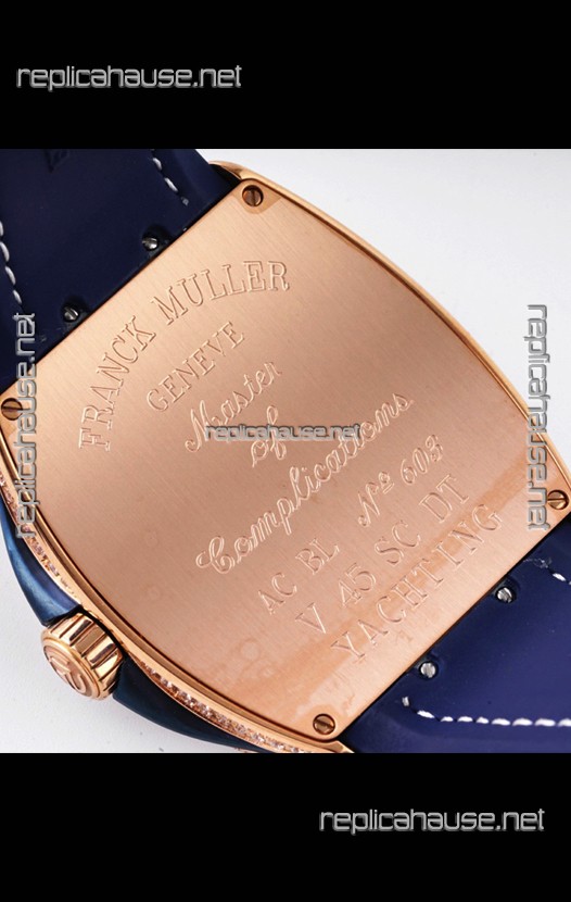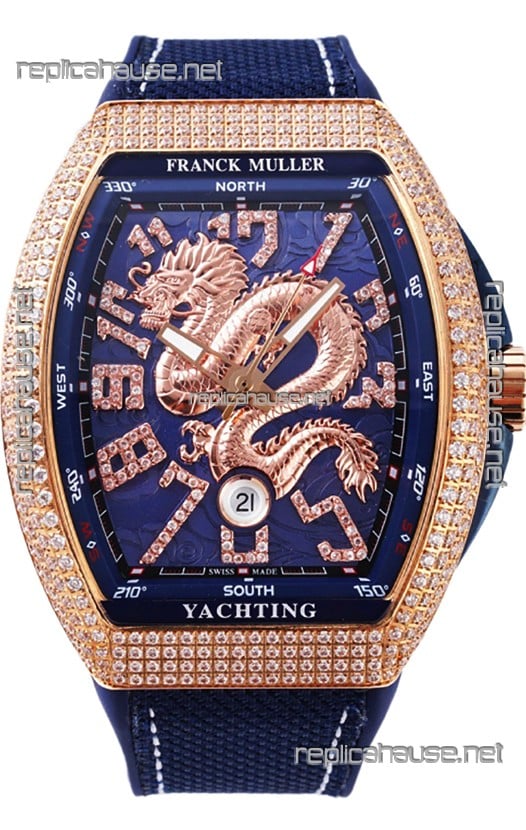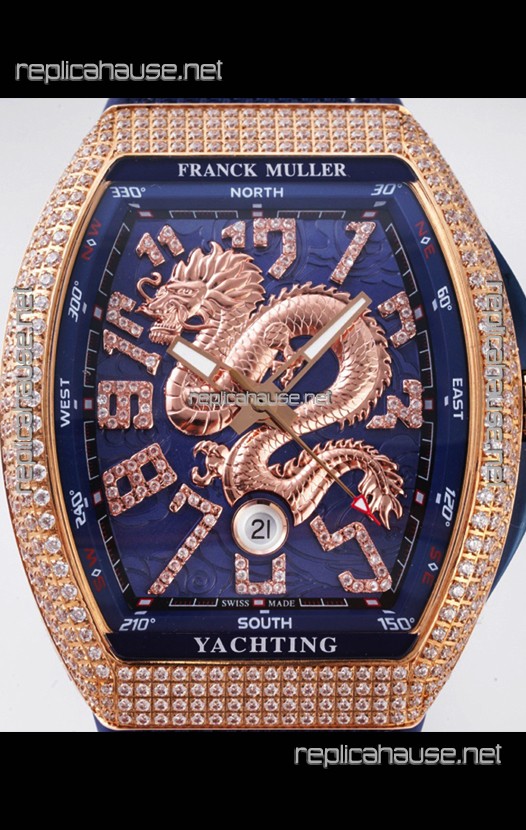 Franck Muller Vanguard Yachting Dragon V45 Blue Dial in Gold Diamonds Bezel Swiss Replica