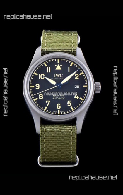 IWC Pilot's MARK XVIII Aviator 1:1 Swiss Watch in 904L Steel Case - Beige Nylon Strap