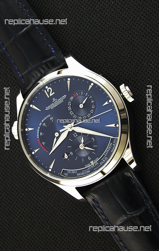 Jaeger LeCoultre Master Geographic Power Reserve Steel Case Steel Blue Dial Swiss Replica Watch